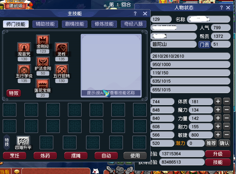 1wz4pt,普陀号跟我发的图片修炼技能都一样!全部双3孔,带芙蓉!全部是一手账号!装备宝宝全带,买到即玩!所有任务通刷!