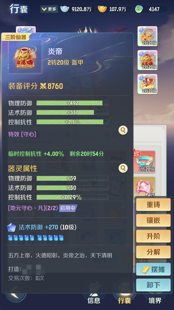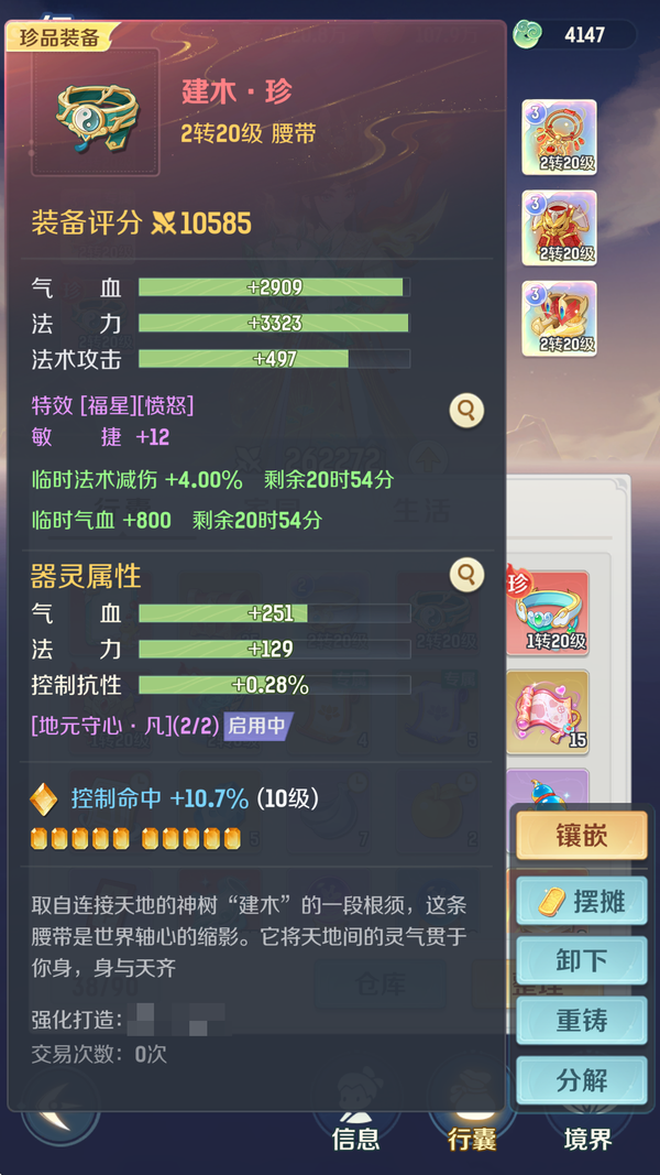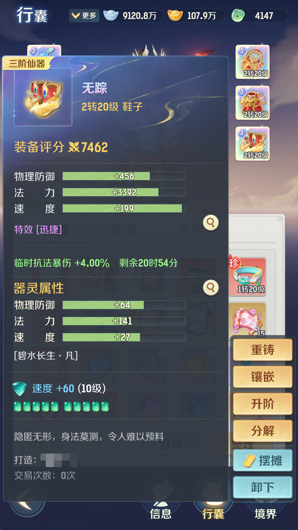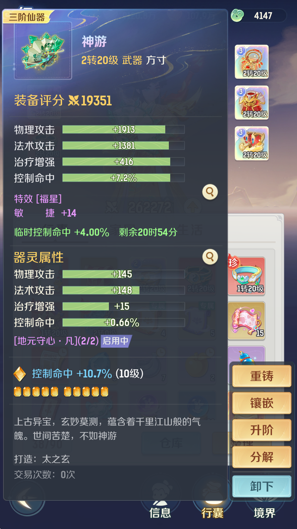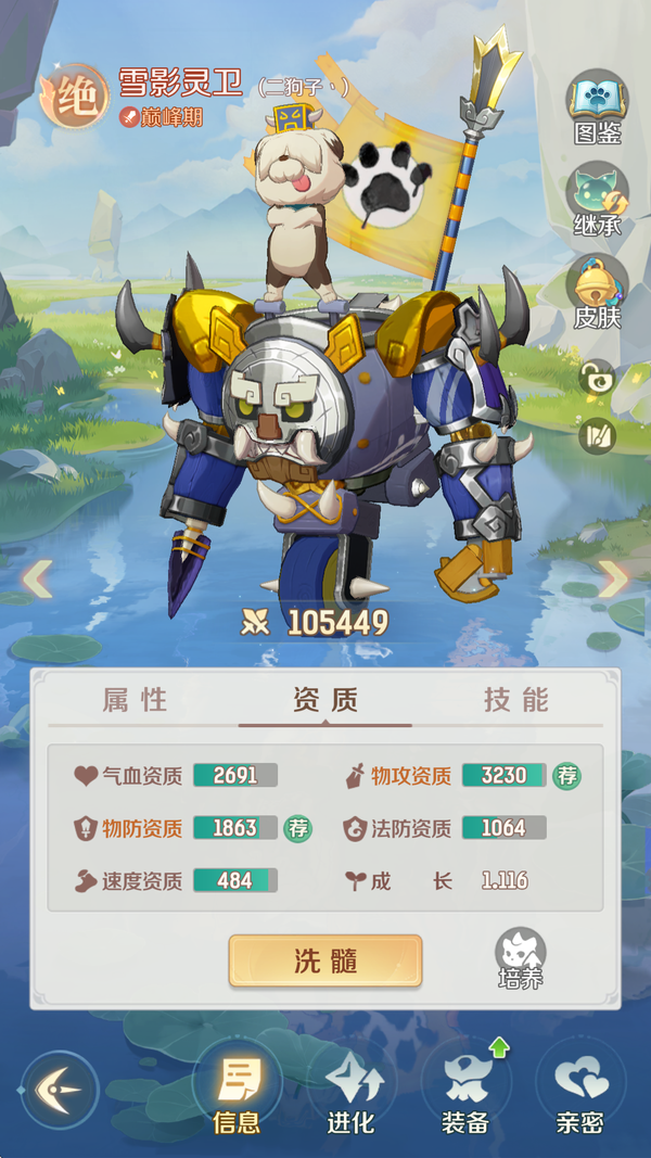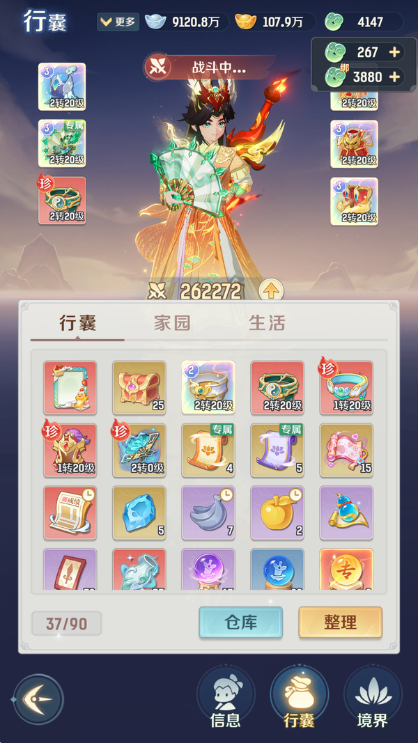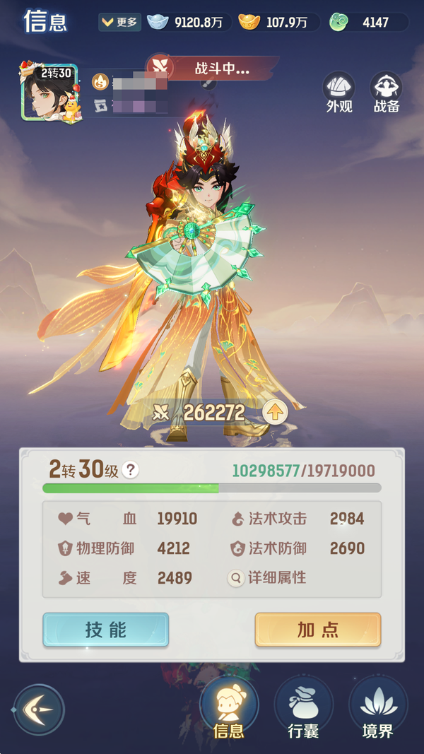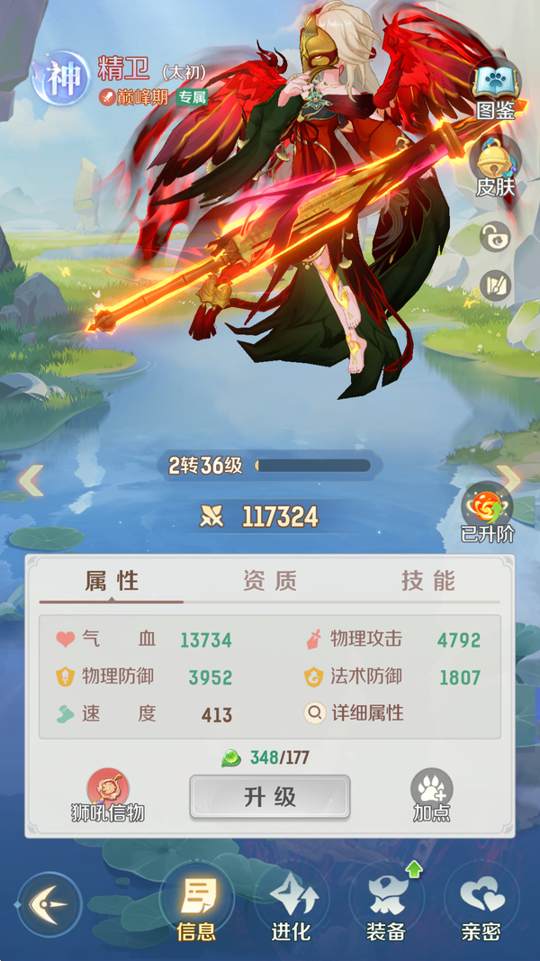 【LGS18151】 | 仙器:6 | 神兽数量:3 | 角色评分:262272 | 珍兽数量:2 | 等级:2转30级 | 方寸 | 男 | 精卫,画中仙,孙悟空 | 貔貅,龙马