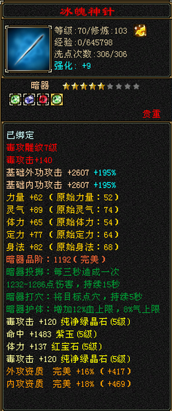 【退游】冰毒内攻三修/大完美武魂暗器/5体5属5命/戒指护符词条拉满,持续更新中