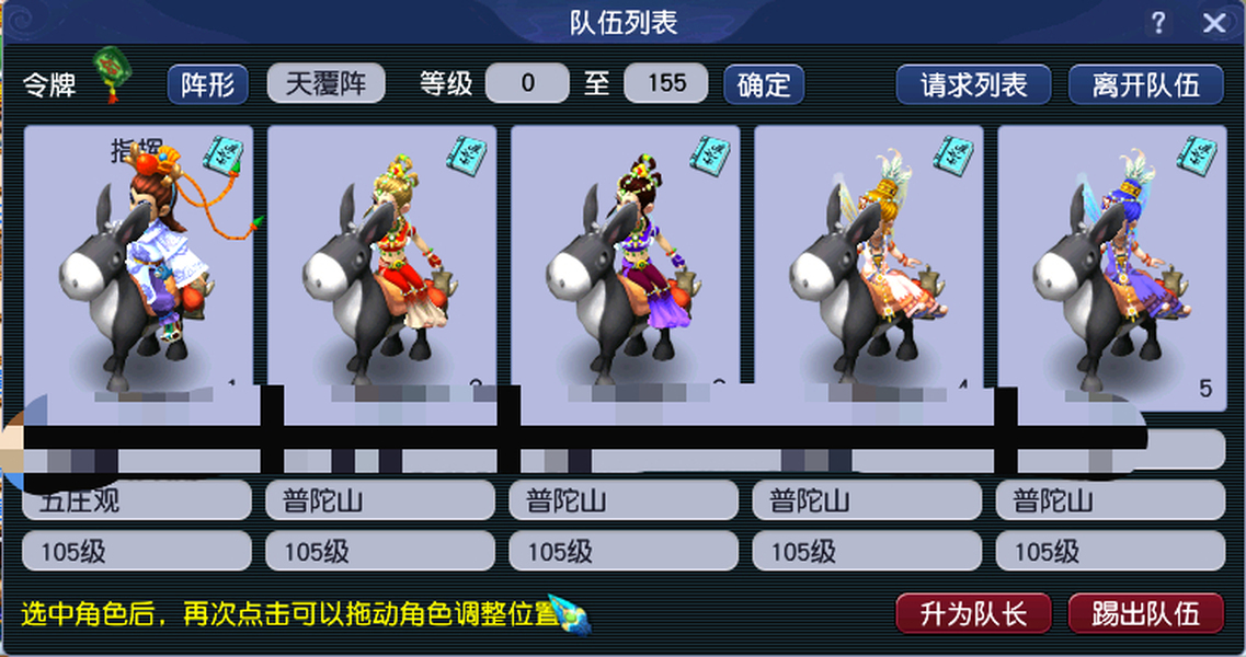 一组105五开,一五庄四普陀,仓库,副本积分都留着,五庄攻修10双抗5,普陀三修7,装备宝宝看图片,都一样,四个普陀装备基本都一样,装备全部双三孔。乾元丹全都开了三丹,日常无压力。五个拉风小驴,