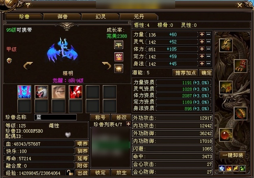【TVF41054】 | 天龙 | 等级:126 | 主属性:18727 | 男 | 评分:363258 | 副属性:6709 | 穿刺伤害:4457 | 穿刺减免:1582 | VIP0 | 【买号找回永久包赔】