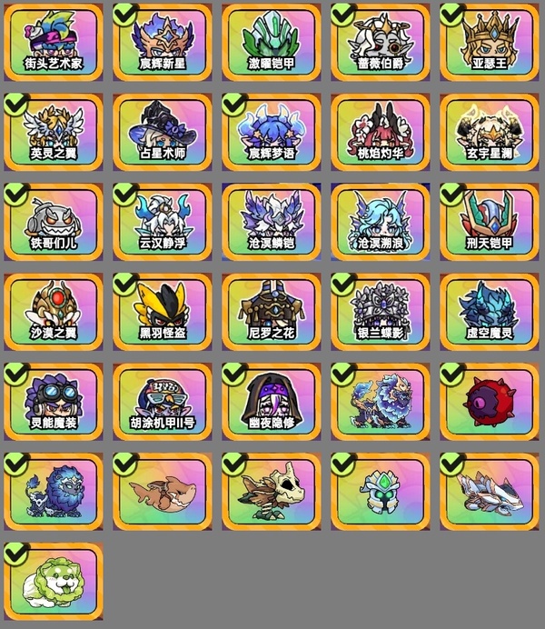英灵之翼、宸辉梦语、沧溟溯浪、黑羽怪盗、桃焰灼华、刑天铠甲、玄宇星澜、幽夜隐修、占星术师、银兰蝶影、沧溟鳞铠、云汉静浮、街头艺术家、灵能魔装、激曜铠甲、铁哥们儿、虚空魔灵、沙漠之翼、亚瑟王、尼罗之花、宸辉新星、胡涂机甲Ⅱ号、蔷薇伯爵