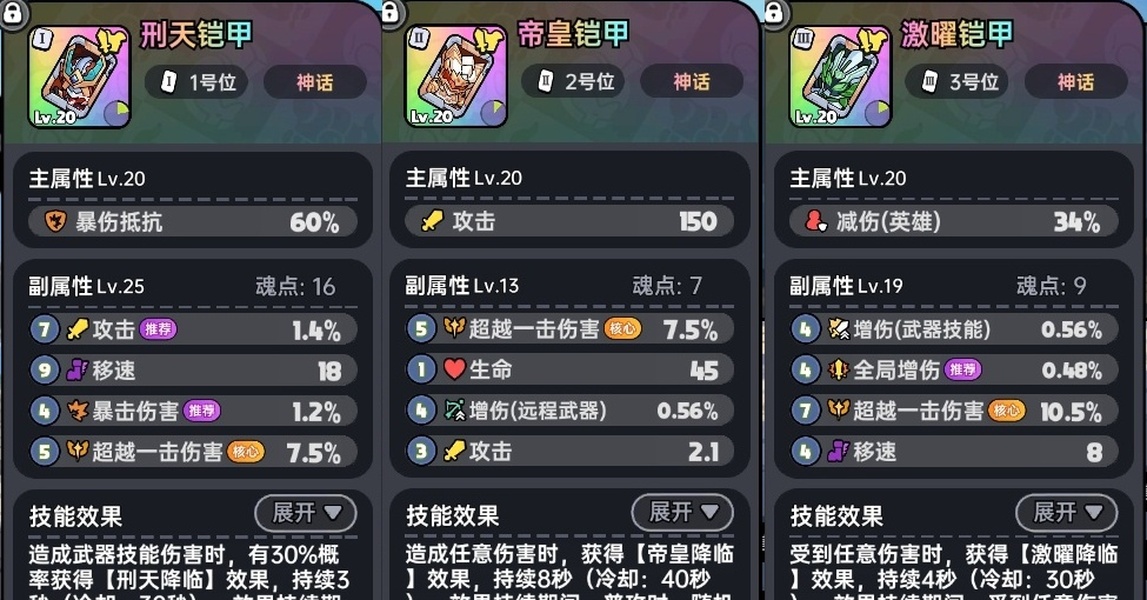 刑天铠甲、帝皇铠甲、激曜铠甲
