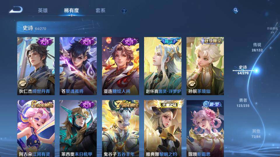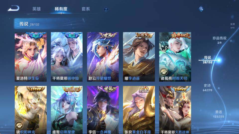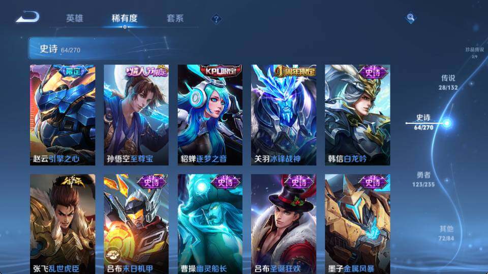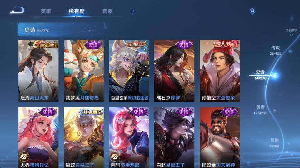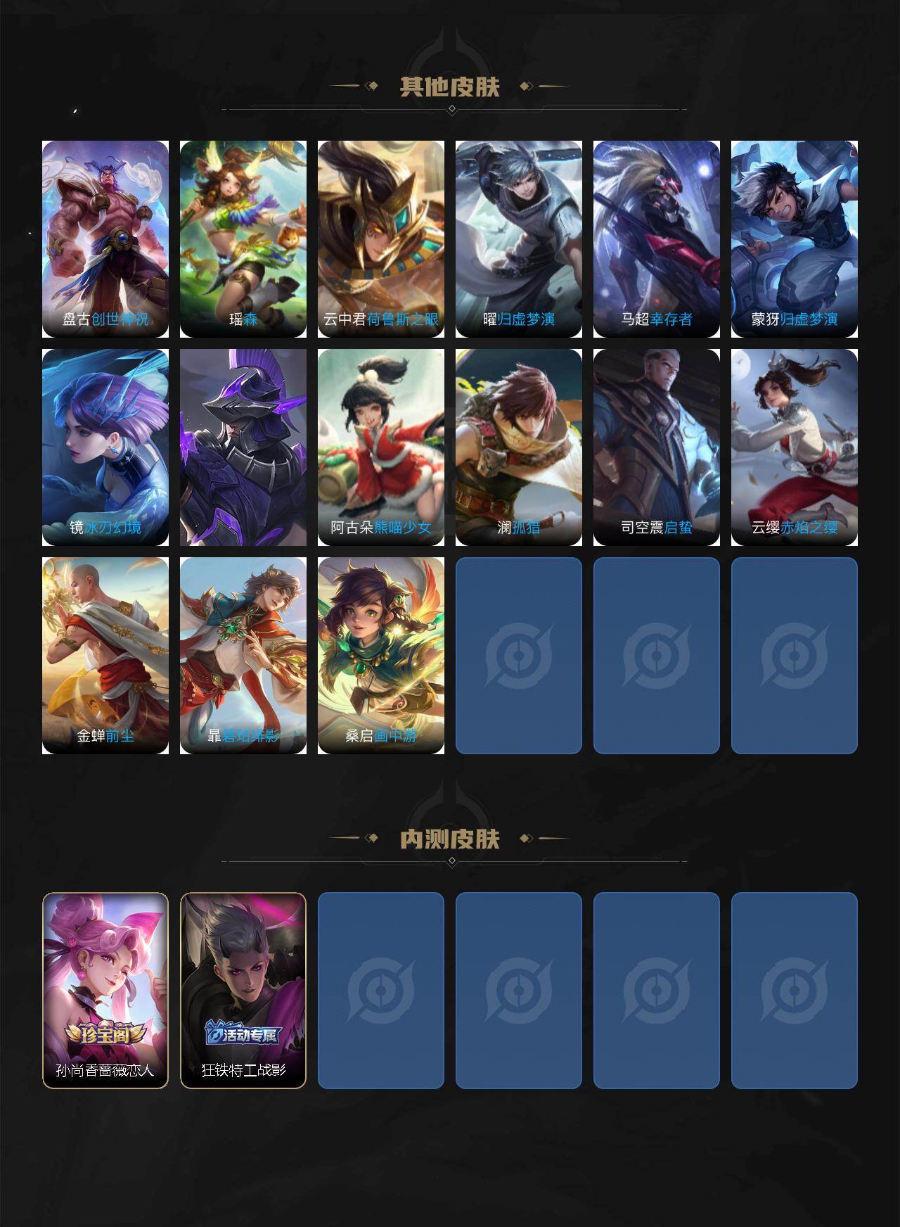 【WQI61169】 | 英雄数量:129 | 皮肤数量:294 | 未用荣耀水晶数量:0 | 武则天 | 武则天 | 马可波罗怪盗基德,嫦娥器灵·落星盏 | 小乔时之魔女,曜器灵·螭龙剑,甄姬雪境奇遇 | 虞姬神鉴启示录 | 鬼谷子天穹祈灯,孙悟空大圣娶亲,夏侯惇朔风刀,少司缘巫礼祀神,沈梦溪大漠名商,狂铁御狮,后羿辉光之辰,女娲愿照·千秋盛,孙膑茶境仙,百里玄策原初追逐者,芈月重明,甄姬雪境奇遇,孙尚香蔷薇恋人,明世隐往忆晖光,裴擒虎擒涛扼浪,鬼谷子原初探秘者,狄仁杰魔术师,莱西奥光弋星穹,嫦娥拒霜思,鬼谷子克喵,赵云皇家上将,后羿神树通天,艾琳鹤鸣心笺,夏洛特浮生妄,孙悟空至尊宝,吕布猎兽之王,沈梦溪龙舞盛年,米莱狄御霄,项羽海滩派对,牛魔御旌,嬴政白昼王子,苏烈千军破阵,马超访茗客,曜李逍遥,曹操逐霄之志,关羽冰锋战神,虞姬凯尔特女王,赵怀真器灵·浮梦炉,弈星混沌棋,西施织梦人,诸葛亮时雨天司,曹操烛龙,西施续相思,太乙真人饕餮,虞姬启明星使,老夫子醍醐杖,钟馗驱傩正仪,虞姬愿照·岁时盈,孙膑妖精王,妲己愿照·众生和,典韦穷奇,桑启海盐诗旅,达摩沙漠行僧,亚瑟荣光之誓,小乔时之魔女,庄周高山流水,白起狰,明世隐疑决卦,雅典娜黎明之约,李元芳云中旅人,貂蝉逐梦之音,程咬金演武夺筹,阿古朵江河有灵,鬼谷子五谷丰年,干将莫邪画中仙,狄仁杰万华元夜,吕布天魔缭乱,周瑜线条小狗,赵云引擎之心,狄仁杰阴阳师,司空震愿照·山河定,澜愿照·九州拓,兰陵王金庭之子 | 吕布猎兽之王,周瑜百相守梦,莱西奥光弋星穹,马超访茗客,孙策百相守梦,孙膑茶境仙,嬴政白昼王子,明世隐往忆晖光 | 鬼谷子天穹祈灯,夏侯惇朔风刀,沈梦溪大漠名商,曹操烛龙,狂铁御狮,太乙真人饕餮,老夫子醍醐杖,百里玄策原初追逐者,芈月重明,钟馗驱傩正仪,孙膑妖精王,典韦穷奇,裴擒虎擒涛扼浪,鬼谷子原初探秘者,甄姬逆浪荇歌,桑启海盐诗旅,达摩沙漠行僧,亚瑟荣光之誓,东皇太一噬灭天穹,白起狰,明世隐疑决卦,雅典娜黎明之约,李元芳云中旅人,程咬金演武夺筹,太乙真人谧流熔炉,米莱狄御霄,狄仁杰万华元夜,牛魔御旌,苏烈千军破阵,虞姬凯尔特女王,兰陵王金庭之子 | 孙悟空大圣娶亲,亚瑟心灵战警,宫本武藏鬼剑武藏,雅典娜冰冠公主,亚连糖绘人间,后羿辉光之辰,百里玄策原初追逐者,项羽九幽镇关,王昭君偶像歌手,孙尚香蔷薇恋人,张飞乱世虎臣,狄仁杰鹰眼统帅,狄仁杰魔术师,嫦娥拒霜思,赵云皇家上将,韩信白龙吟,刘禅天才门将,孙悟空至尊宝,曹操幽灵船长,墨子金属风暴,黄忠百相守梦,嬴政白昼王子,貂蝉圣诞恋歌,阿轲化蝶舞,白起星夜王子,扁鹊灵蛊蚀心,橘右京修罗,狄仁杰绮世丹青,妲己魅力维加斯,关羽冰锋战神,嬴政暗夜贵公子,大乔猫狗日记,小乔缤纷独角兽,赵云未来纪元,吕布末日机甲,百里守约特工魅影,夏侯惇乘风破浪,嬴政摇滚巨星,沈梦溪月团寄思,庄周高山流水,兰陵王暗隐猎兽者,露娜紫霞仙子,莱西奥末日机甲,李元芳逐浪之夏,雅典娜黎明之约,安琪拉心灵骇客,程咬金功夫厨神,貂蝉逐梦之音,吕布圣诞狂欢,阿古朵江河有灵,鬼谷子五谷丰年,孙尚香水果甜心,赵云引擎之心,狂铁龙之律动,苍狼魂孤将,项羽苍穹之光,阿轲节奏热浪,甄姬冰雪圆舞曲 | 诸葛亮时雨天司,孙悟空地狱火,西施续相思,宫本武藏地狱之眼,虞姬启明星使,女娲愿照·千秋盛,虞姬愿照·岁时盈,妲己愿照·众生和,云缨幻光神枪,孙尚香末日机甲,狄仁杰超时空战士,貂蝉仲夏夜之梦,镜炽阳神光,夏洛特浮生妄,干将莫邪久胜战神,后羿黄金射手座,干将莫邪画中仙,赵云淬星耀世,蔡文姬愿照·福禄聚,吕布天魔缭乱,嬴政玄雷天君,张良黄金白羊座,李信一念神魔,嫦娥器灵·落星盏,司空震愿照·山河定,澜愿照·九州拓,曜李逍遥,武则天海洋之心 | 孙尚香蔷薇恋人 | 公孙离花间舞,张飞五福同心,后羿完美运算,沈梦溪棒球奇才,甄姬花好人间,伽罗花见巫女,杨戬埃及法老,程咬金无双福将,孙膑未来旅行,小乔万圣前夜,司空震启蛰,诸葛亮掌控之力,米莱狄精准探案法,梦奇美梦成真,李信灼热之刃,露娜命运加冕,沈梦溪龙舞盛年,孙尚香沉稳之力,司马懿魇语军师,明世隐占星师,东皇太一金福满堂,宫本武藏未来纪元,鲁班七号福禄兄弟,亚连破局者,孙权径山谋武,刘备浪漫序章,老夫子功夫老勺,刘备万事如意,暃碧珀绯影,孙膑天使之翼,典韦黄金武士,马超幸存者,瑶森,鲁班七号木偶奇遇记,哪吒三太子,马可波罗激情绿茵,高渐离金属狂潮,蒙恬蔚蓝守将,宫本武藏万象初新,程咬金星际陆战队,关羽龙腾万里,刘禅英喵野望,裴擒虎街头旋风,花木兰兔女郎,盘古创世神祝,姬小满小满鸭,项羽帝国元帅,诸葛亮星航指挥官,钟无艳生化警戒,白起白色死神,金蝉前尘,姜子牙时尚教父,程咬金爱与正义,夏侯惇战争骑士,达摩爆裂喵拳,姬小满零食大作战,老夫子潮流仙人,钟馗虚灵犬护,牛魔西部大镖客,狂铁命运角斗场,云中君云械蓝图,刘禅秘密基地,貂蝉异域舞娘,狄仁杰锦衣卫,桑启画中游,廉颇功夫炙烤,上官婉儿修竹墨客,关羽天启骑士,刘备汉昭烈帝,曹操死神来了,高渐离落日弦歌,澜孤猎,露娜绯红之刃,哪吒罗小黑战记,猪八戒潮玩探月行,镜冰刃幻境,赵云忍炎影,影魅影绮裳,蒙犽胡桃狂想曲,鬼谷子幻乐之宴,达摩拳王,曜归虚梦演,妲己少女阿狸,嫦娥露花倒影,云缨赤焰之缨,安琪拉玩偶对对碰,狂铁特工战影,阿古朵熊喵少女,后羿精灵王,弈星踏