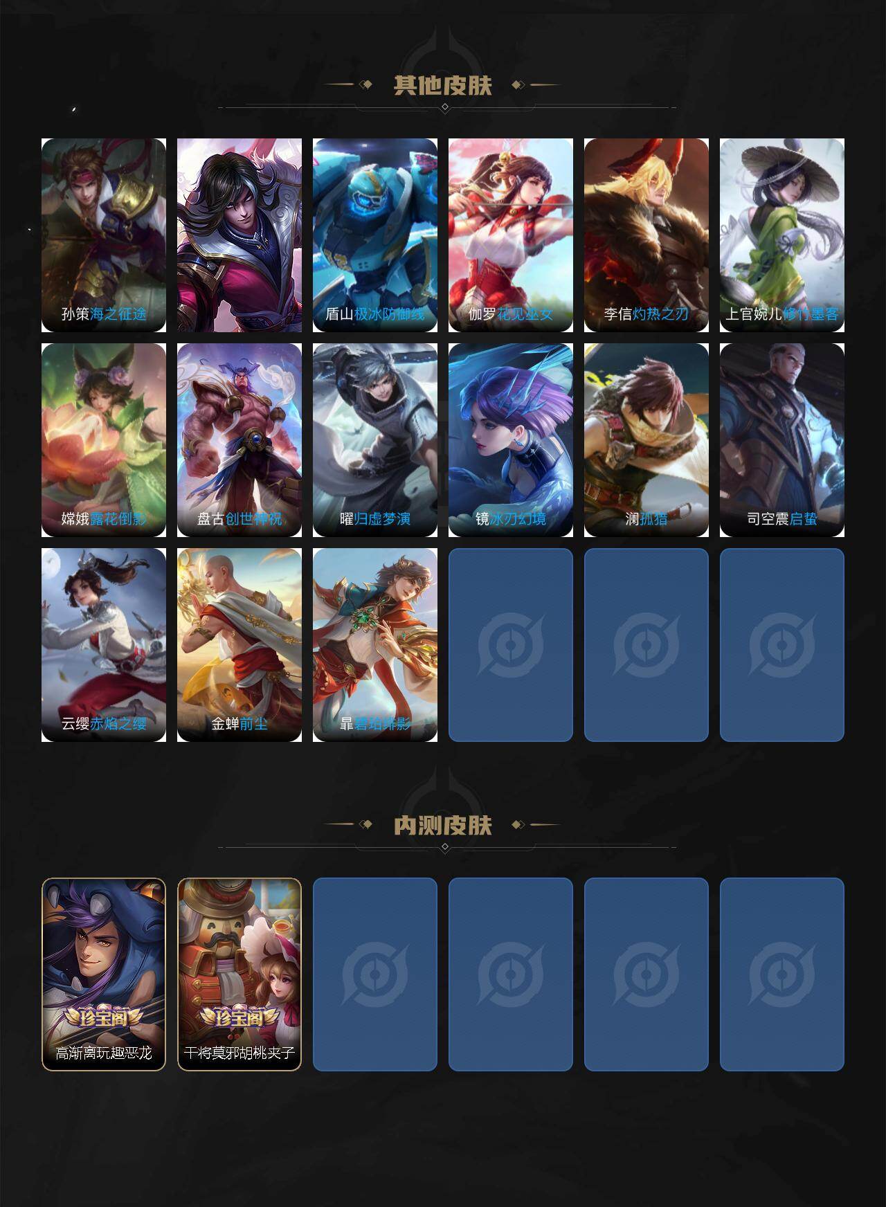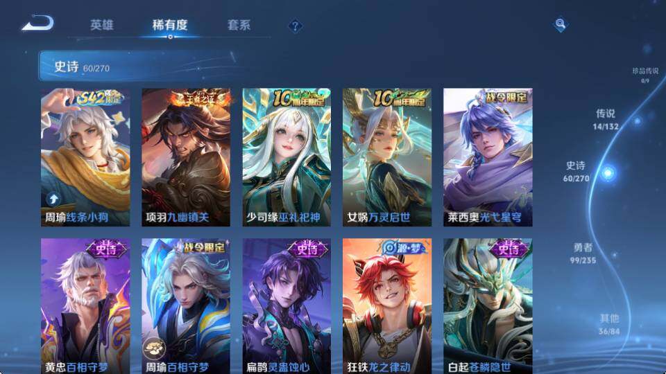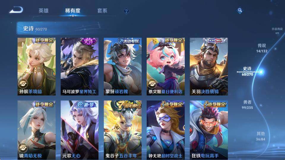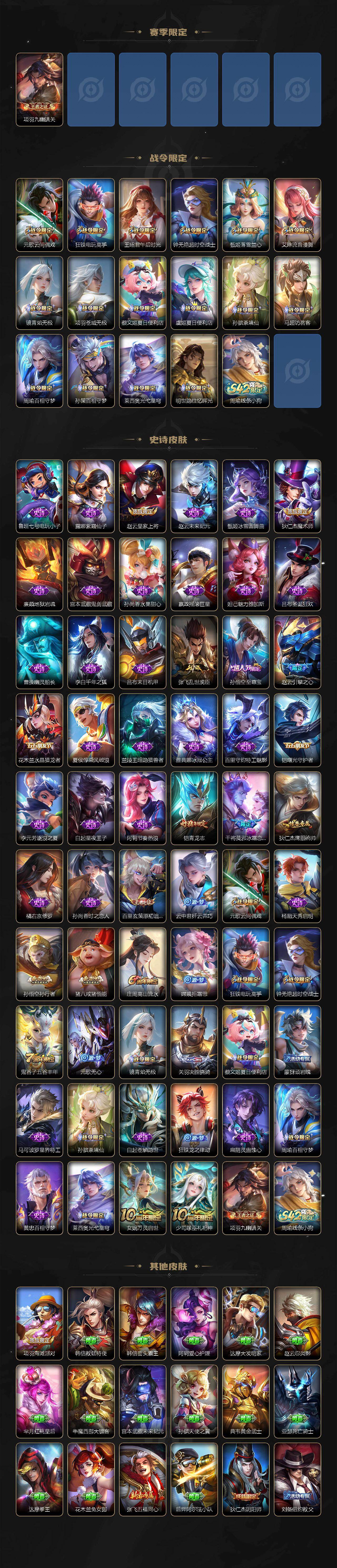 【WQJ25631】 | 英雄数量:126 | 皮肤数量:211 | 未用荣耀水晶数量:0 | 铠神罪 | 李白鸣剑·曳影 | 鬼谷子天穹祈灯,狂铁电玩高手,少司缘巫礼祀神,沈梦溪大漠名商,周瑜熔金海岸,猪八戒猪悟能,孙膑茶境仙,百里玄策原初追逐者,女娲万灵启世,明世隐往忆晖光,裴擒虎擒涛扼浪,甄姬落雪兰心,狄仁杰魔术师,莱西奥光弋星穹,嫦娥拒霜思,鬼谷子克喵,赵云皇家上将,干将莫邪冰霜恋舞曲,后羿神树通天,元歌无心,艾琳鹤鸣心笺,孙悟空至尊宝,王昭君午后时光,项羽苍威无极,镜青焰无极,铠青龙志,项羽海滩派对,刘邦剑破天穹,马超访茗客,钟无艳超时空战士,曹操逐霄之志,干将莫邪胡桃夹子,鲁班大师探海日志,蒙犽顽岩魄,关羽决胜骁骑,元歌云间偶戏,桑启海盐诗旅,达摩沙漠行僧,亚瑟荣光之誓,庄周高山流水,杨戬纵目迁山,刘备异域游侠,云中君纤云弄巧,李元芳云中旅人,张良古海寻踪,高渐离玩趣恶龙,程咬金演武夺筹,鬼谷子五谷丰年,狄仁杰万华元夜,周瑜线条小狗,司马懿九山相柳,艾琳流音漫舞,赵云引擎之心,狄仁杰阴阳师,司空震愿照·山河定,孙悟空孙行者,兰陵王金庭之子 | 狂铁电玩高手,王昭君午后时光,项羽苍威无极,周瑜百相守梦,镜青焰无极,孙膑茶境仙,明世隐往忆晖光,艾琳流音漫舞,元歌云间偶戏,虞姬夏日便利店,甄姬落雪兰心,莱西奥光弋星穹,马超访茗客,孙策百相守梦,钟无艳超时空战士,蔡文姬夏日便利店 | 鬼谷子天穹祈灯,李元芳云中旅人,张良古海寻踪,程咬金演武夺筹,沈梦溪大漠名商,太乙真人谧流熔炉,鲁班大师探海日志,狄仁杰万华元夜,百里玄策原初追逐者,刘邦剑破天穹,姜子牙天穹之誓,裴擒虎擒涛扼浪,甄姬逆浪荇歌,桑启海盐诗旅,达摩沙漠行僧,亚瑟荣光之誓,兰陵王金庭之子 | 狂铁电玩高手,宫本武藏鬼剑武藏,赵云未来纪元,吕布末日机甲,猪八戒猪悟能,雅典娜冰冠公主,百里玄策原初追逐者,百里守约特工魅影,项羽九幽镇关,夏侯惇乘风破浪,嬴政摇滚巨星,廉颇地狱岩魂,张飞乱世虎臣,狄仁杰鹰眼统帅,元歌云间偶戏,狄仁杰魔术师,庄周高山流水,兰陵王暗隐猎兽者,嫦娥拒霜思,云中君纤云弄巧,铠曙光守护者,露娜紫霞仙子,赵云皇家上将,干将莫邪冰霜恋舞曲,李元芳逐浪之夏,李白千年之狐,杨戬天秀启明,元歌无心,孙悟空至尊宝,吕布圣诞狂欢,曹操幽灵船长,鬼谷子五谷丰年,黄忠百相守梦,铠青龙志,孙尚香时之恋人,孙尚香水果甜心,白起苍鳞隐世,花木兰水晶猎龙者,白起星夜王子,扁鹊灵蛊蚀心,橘右京修罗,赵云引擎之心,妲己魅力维加斯,狂铁龙之律动,钟无艳超时空战士,孙悟空孙行者,阿轲节奏热浪,鲁班七号电玩小子,甄姬冰雪圆舞曲 | 马超无双飞将,裴擒虎祥瑞亨通,曜云鹰飞将,赵云淬星耀世,司空震愿照·山河定,澜逐花归海,宫本武藏地狱之眼,典韦战鼓燎原,达摩黄金狮子座,云缨幻光神枪,李信一念神魔 | 高渐离玩趣恶龙,干将莫邪胡桃夹子 | 张良缤纷绘卷,公孙离花间舞,张飞五福同心,白起乐园追猎者,大乔绒语心约,伽罗花见巫女,司空震启蛰,刘备潮玩造梦师,诸葛亮掌控之力,海诺时空谍影,李信灼热之刃,孙尚香沉稳之力,司马懿魇语军师,东皇太一金福满堂,宫本武藏未来纪元,孙权径山谋武,老夫子功夫老勺,暃碧珀绯影,孙膑天使之翼,典韦黄金武士,鬼谷子谜偶窥秘,鲁班七号木偶奇遇记,哪吒三太子,马可波罗激情绿茵,关羽龙腾万里,刘禅英喵野望,花木兰兔女郎,盘古创世神祝,虞姬加勒比小姐,诸葛亮星航指挥官,牛魔制霸全明星,金蝉前尘,达摩爆裂喵拳,姬小满零食大作战,老夫子潮流仙人,钟馗虚灵犬护,牛魔西部大镖客,狂铁命运角斗场,刘禅秘密基地,貂蝉异域舞娘,廉颇功夫炙烤,上官婉儿修竹墨客,刘备汉昭烈帝,澜孤猎,哪吒罗小黑战记,镜冰刃幻境,亚瑟动物派对,赵云忍炎影,妲己紫罗兰之誓,蒙犽胡桃狂想曲,达摩拳王,曜归虚梦演,嫦娥露花倒影,云缨赤焰之缨,周瑜熔金海岸,后羿精灵王,弈星踏雪寻梅,哪吒热血海滩,阿轲爱心护理,芈月红桃皇后,戈娅危途狂花,虞姬溯影追猎,海月幻泉雾影,百里守约绝影神枪,达摩大发明家,典韦铁甲之心,鲁班大师乓乓大师,莱西奥西部游侠,吕布野性能量,盾山极冰防御线,韩信街头霸王,戈娅玫蓝誓约,钟无艳海滩丽影,莱西奥踏浪烽翎,李白敏锐之力,钟馗地府判官,李元芳特种部队,亚瑟死亡骑士,大司命暗都幽影,苍维京掠夺者,姜子牙星梦巡礼,沈梦溪鲨炮海盗猫,百里玄策威尼斯狂欢,西施雪境奇遇,典韦铁骨偃魂,刘备异域游侠,兰陵王隐刃,孙策海之征途,刘备纽约教父,王昭君幻想奇妙夜,苏烈爱与和平,墨子进击墨子号,黄忠芝加哥教父,苏烈坚韧之力,蚩奼极光幻客,阿古朵布丁狗之约,铠龙域领主,张良灵野札记,哪吒次元突破,后羿阿尔法小队,明世隐景韶洛都,元歌午夜歌剧院,韩信教廷特使