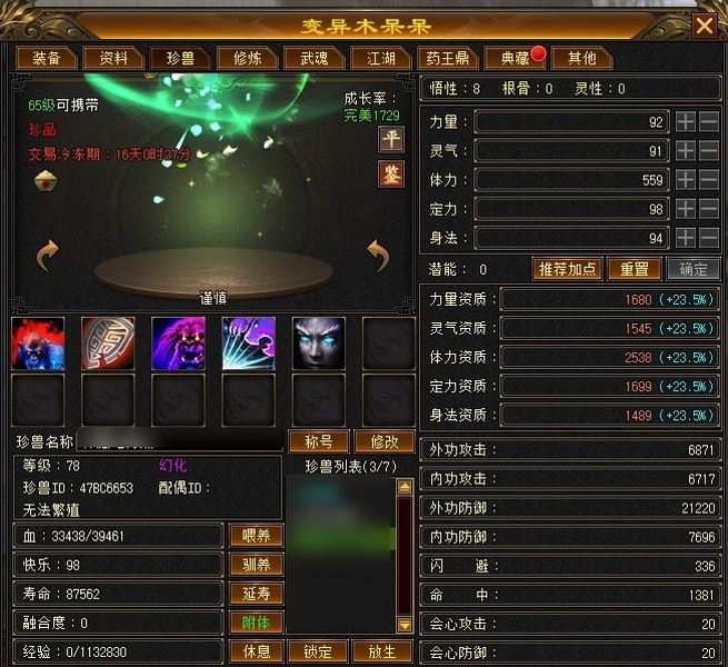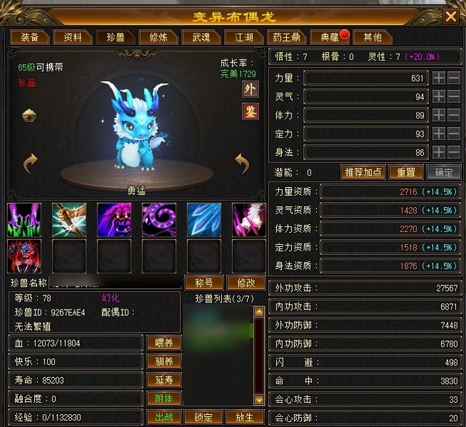 【TIX02320】 | 少林 | 等级:69 | 主属性:1137 | 副属性:265 | 女 | 主玄攻