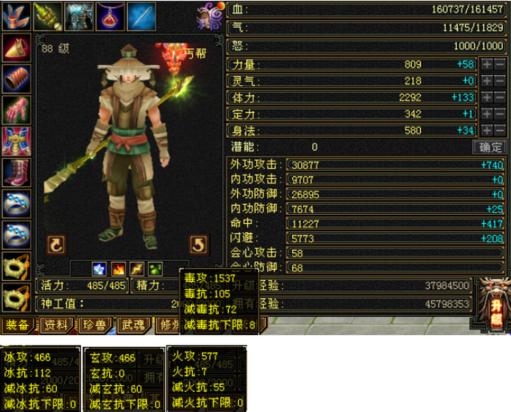 4修暴力丐帮,总3000+属性,外功3万。5雕满4心法全满,武器暗器强9,武魂7孔开好。平推2.8,横扫伤害3.4,细节号,上手就能玩。