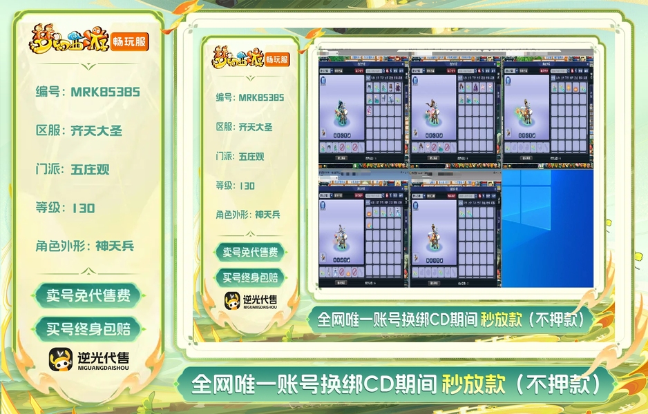 1五庄4普陀,副本积分5个号有4万。自己有个3级帮,有个紫气豪宅给宝宝加寿命够用。号已经登记藏宝阁了,但是有些东西显示不出来,到时候可以自己过户。绝对的安全。每个号都有150万的人物,宝宝红秘制,大几十万的篮秘制,无脑挂机,可刀。