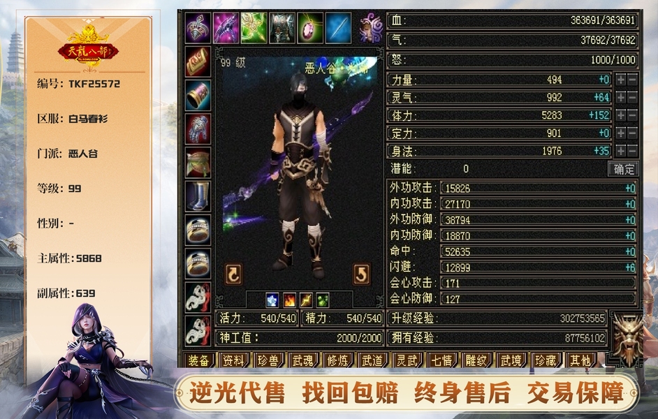 【TKF25572】 | 恶人谷 | 等级:99 | 主属性:5868 | 副属性:639 | 主毒攻 | VIP6 | 畅游账号