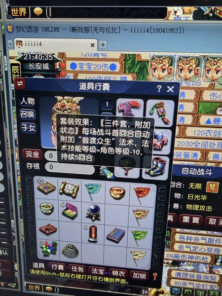 逆光买的一星期,上班没空玩了,1大唐4普陀120级,带攻一组法一组,血敏2组,无符属性,两套普渡,月卡24天,每天家具能有300万,仓库东西都没清,都带再生头三孔,高伤加属性武器衣服,四海玉清等,爽快的送个120天宫