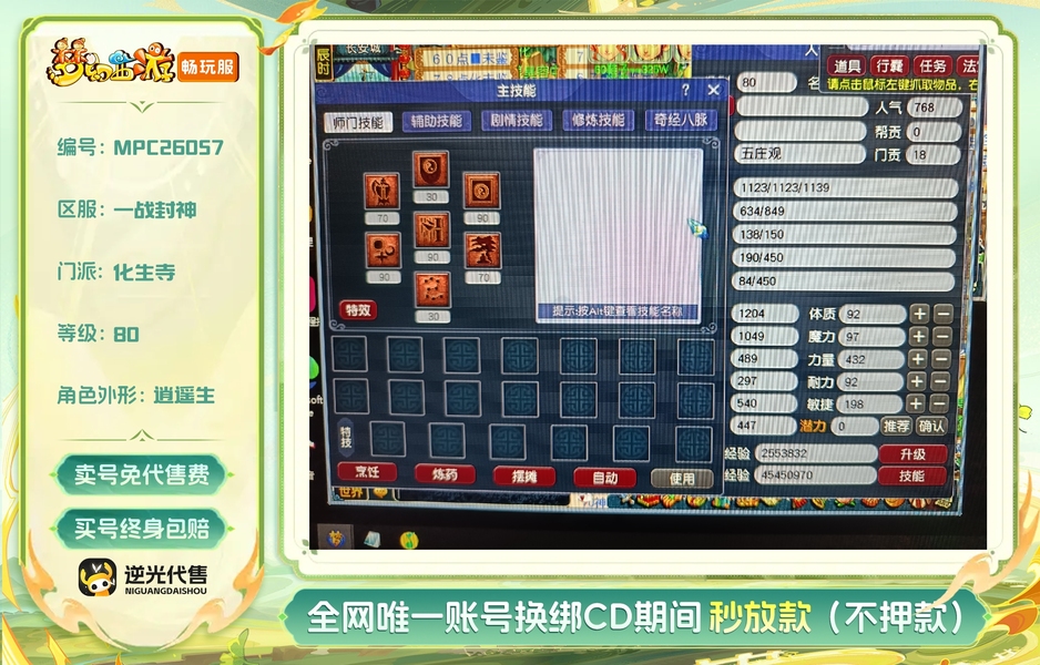 1花生1盘丝3五庄 腰鞋3段黑宝石 其他2段宝石 速度已配好上线就能刷。花生队长号有天阵。几个环装就回本