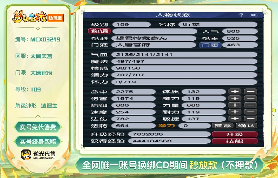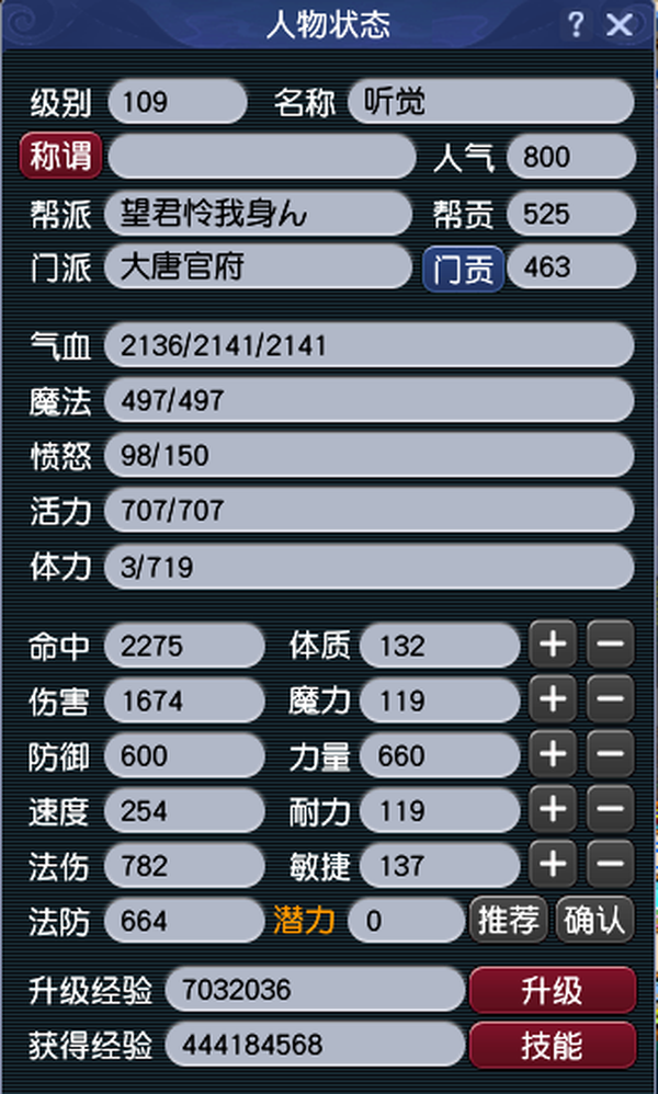 帮派资材满 随便点修 空号 下个月可以配合上格子 三界已刷