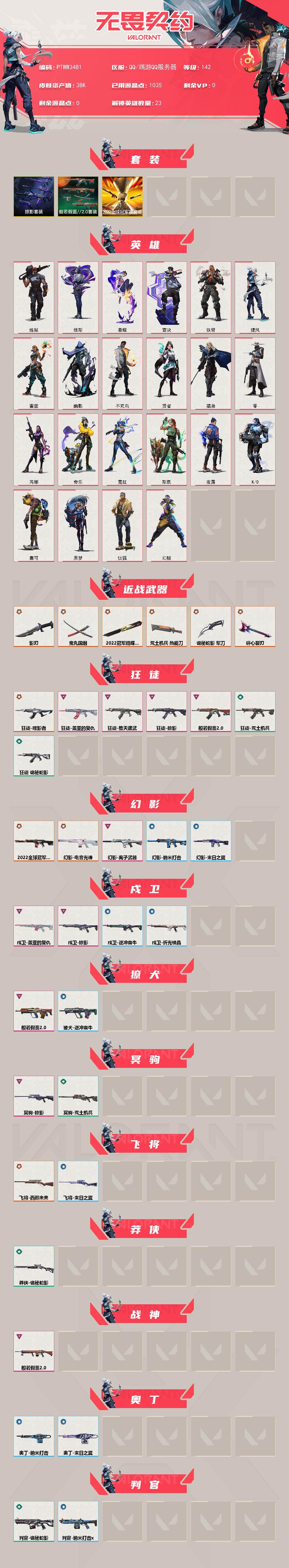 【WMI76394】 | 皮肤资产价值:38840 | 鬼丸国纲,荒土机兵热能刀,诡秘蛇影军刀,影刃,2022全球冠军赛蝴蝶刀 | 电音光谱幻影,2022全球冠军赛幻影,纳米打击幻影,离子武器幻影,末日之翼幻影 | 盖亚的复仇狂徒,诡秘蛇影狂徒,噬影者狂徒,堕天遗武狂徒,般若假面2.0狂徒,荒土机兵狂徒,掠影狂徒 | 西部未来正义,纳米打击正义,超限闪存正义,掠影正义 | 超能偶像标配,荒土机兵标配,VCT25xLEV标配,折光棱晶标配 | 缄默者鬼魅,艾沃莉的梦之翼鬼魅,诡秘蛇影鬼魅,星云暗涌鬼魅 | 掠影冥驹 | 末日之翼奥丁,纳米打击奥丁 | 盖亚的复仇戍卫,掠影戍卫,逆冲蛮牛戍卫,折光棱晶戍卫 | 般若假面2.0獠犬 | 诡秘蛇影莽侠 | 诡秘蛇影判官,纳米打击判官 | 荒土机兵骇灵 | 折光棱晶蜂刺 | 末日之翼短炮 | 般若假面2.0战神 | 末日之翼飞将,西部未来飞将 | 逆冲蛮牛雄鹿 | 般若假面2.0狂怒,逆冲蛮牛狂怒 | 【买号找回永久包赔】