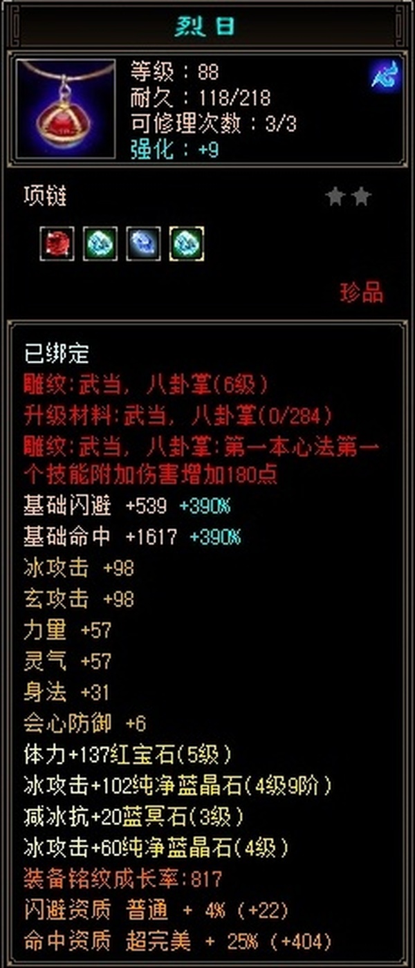 【TDI69530】 | 武当 | 等级:88 | 主属性:2917 | 副属性:1626 | 男 | 主冰攻