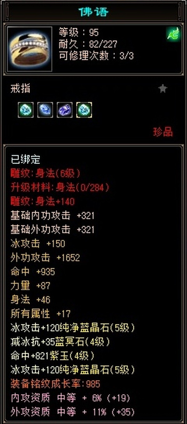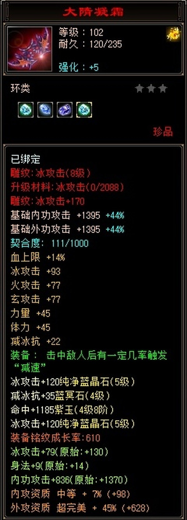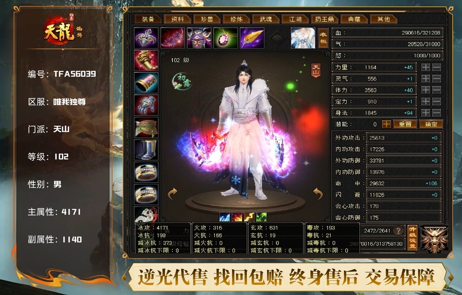 【TFA56039】 | 天山 | 等级:102 | 主属性:4171 | 副属性:1140 | 男 | 主冰攻