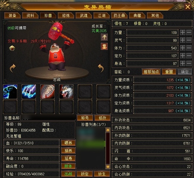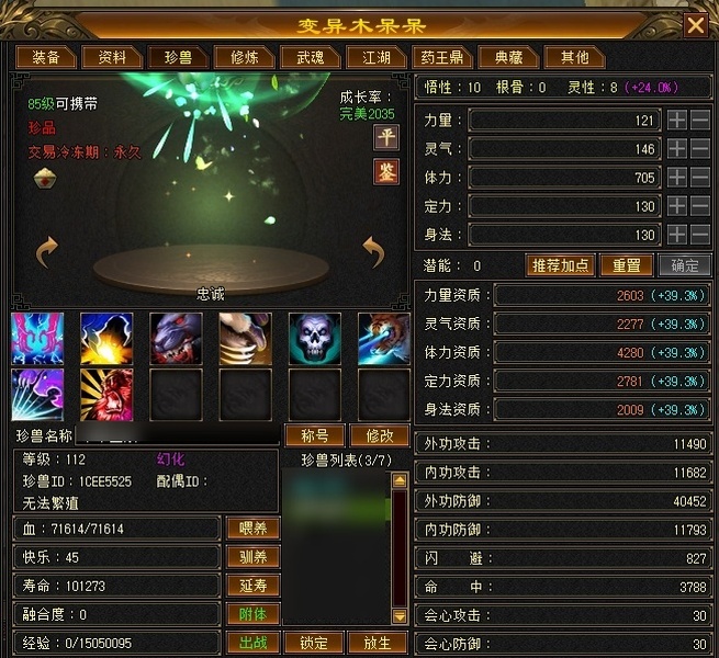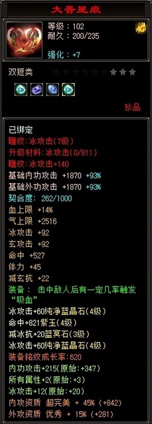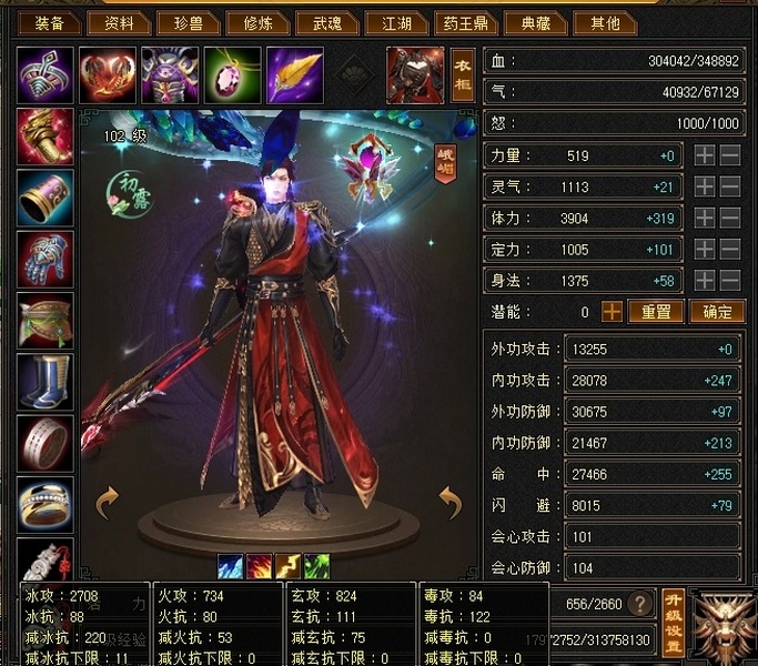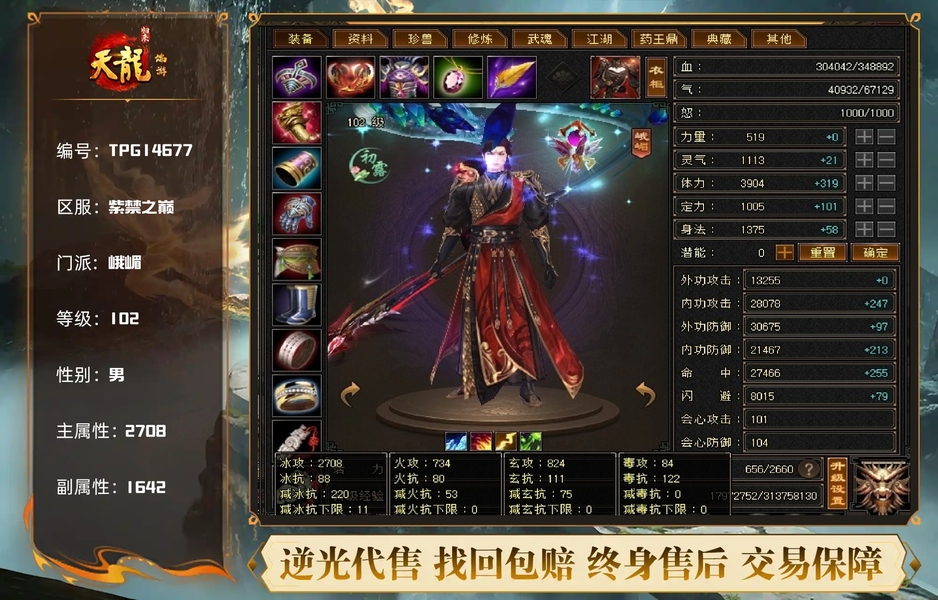 【TPG14677】 | 峨嵋 | 等级:102 | 主属性:2708 | 副属性:1642 | 男 | 主冰攻
