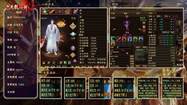 天龙 | 等级:126 | 主属性:18727 | 男 | 评分:363258 | 副属性:6709 | 穿刺伤害:4457 | 穿刺减免:1582 | VIP0 | 【买号找回永久包赔】