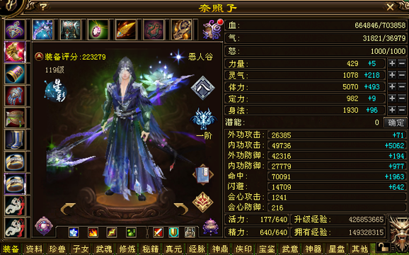 【TBU98109】 | 等级:119 | 评分:225000 | 主属性:10500 | 副属性:3000 | 穿刺伤害:3300 | 穿刺减免:200 | 恶人谷 | 男 | VIP7 【买号找回永久包赔】
