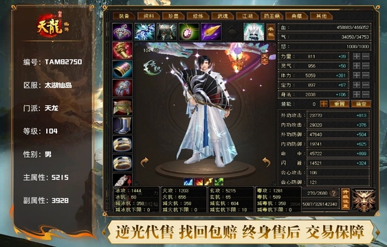 天龙 | 等级:104 | 主属性:5215 | 副属性:3928 | 男 | 主玄攻