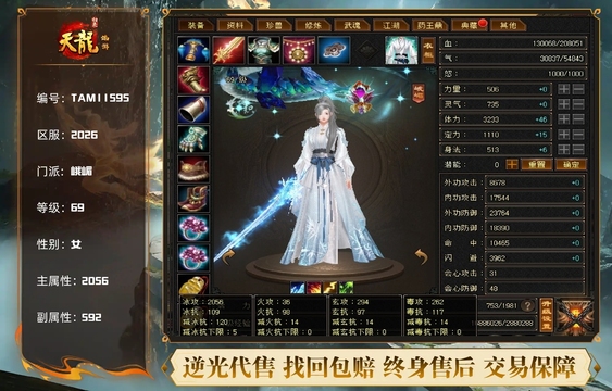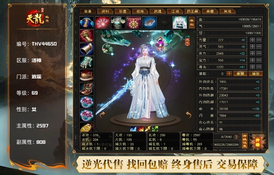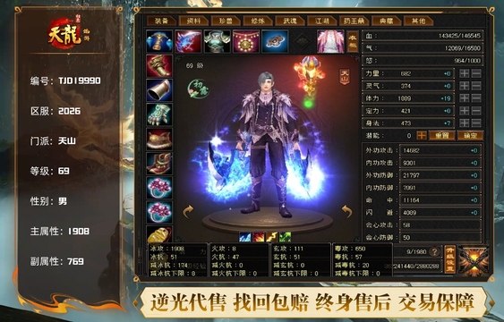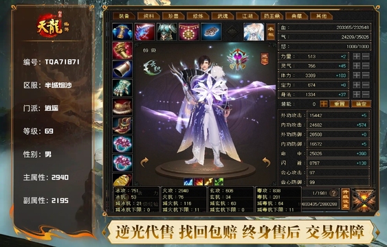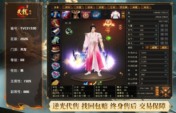 天龙 | 等级:69 | 主属性:1505 | 副属性:886 | 男 | 主玄攻