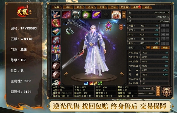 总属性4000+,卡69级天龙,有三十附体,完美7技能武魂,可刷任何活动,接手无需投资!畅易阁未实名认证,买过去你就是第一任!补充截图里有截图,持续更新到月底,转门派2月5号上线!别打电话了,这就是最低价了!