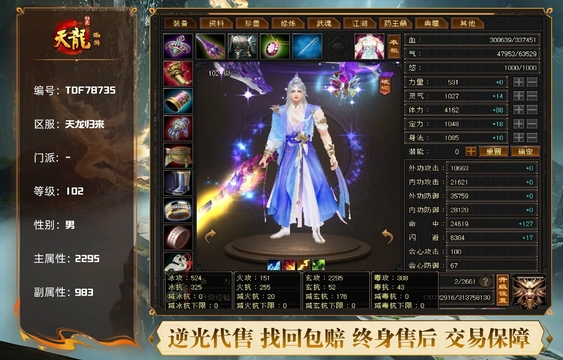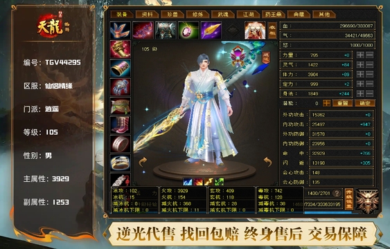 天龙 | 等级:104 | 主属性:4795 | 副属性:4684 | 男 | 主玄攻