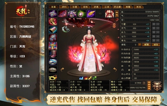 天龙 | 等级:103 | 主属性:3106 | 副属性:3337 | 女 | 主玄攻
