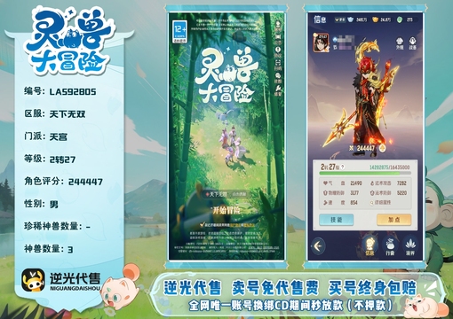 仙器:2312 | 神兽数量:3 | 角色评分:244447 | 珍兽数量:2 | 等级:2转27 | 天宫 | 男 | 画中仙,孙悟空 | 貔貅,龙马