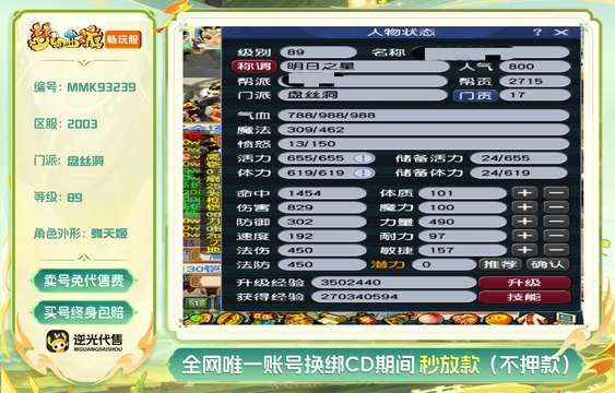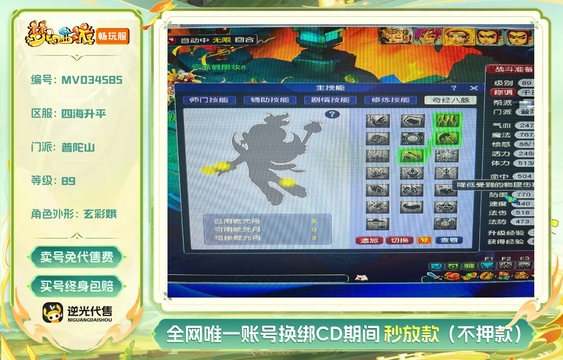 总经验:16000万 | 等级:89 | 五庄观,盘丝洞,化生寺,普陀山 | 无换绑CD | 30天尊享特权 | 【逆光代售卖号0手续费】【买号找回永久包赔】