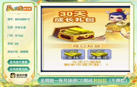 总经验:10000万 | 等级:69 | 方寸山 | 存在换绑CD | 180天尊享特权 | 男 | 【逆光代售卖号0手续费】【买号找回永久包赔】