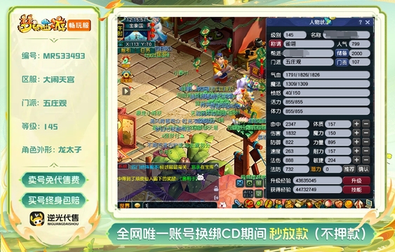 等级:145 | 五庄观 | 存在换绑CD | 180天尊享特权 | 【逆光代售卖号0手续费】【买号找回永久包赔】