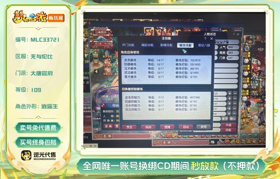 1wz4pt,普陀号跟我发的图片修炼技能都一样!全部双3孔,带芙蓉!全部是一手账号!装备宝宝全带,买到即玩!所有任务通刷!