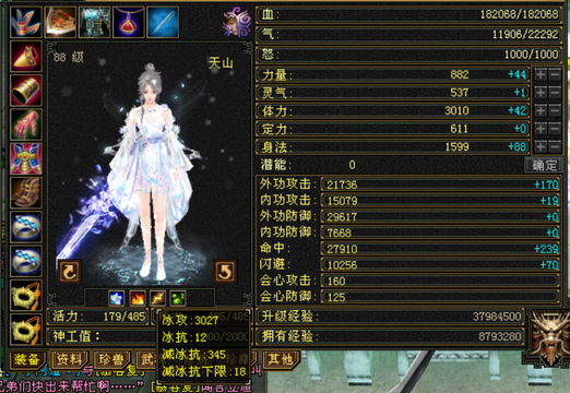 【TQE46726】 | 主属性:3027 | 等级:88 | 副属性:1503 | 天山 | 女 | VIP5 | 主冰攻