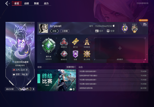 等级:310 | 皮肤资产价值:1310 | 枪皮数量:6 | 刀皮数量:1