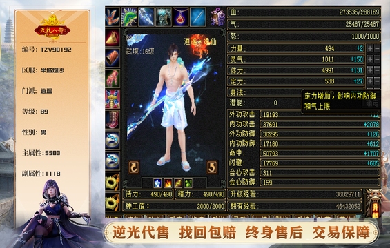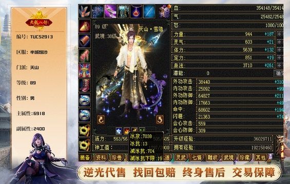 天山 | 等级:89 | 主属性:6918 | 副属性:2400 | 男 | 主冰攻 | VIP5 | 畅游账号
