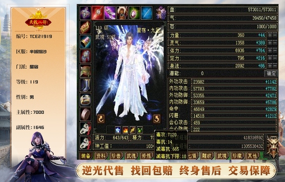 星宿 | 等级:119 | 主属性:7000 | 副属性:1646 | 男 | 主毒攻 | VIP4 | 畅游账号