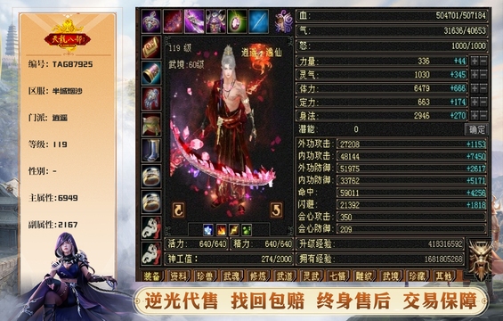 武当 | 等级:119 | 主属性:6509 | 副属性:1970 | 男 | 主冰攻 | VIP1 | 畅游账号