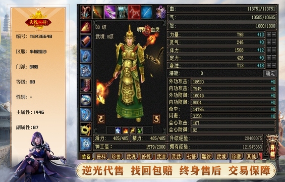 明教 | 等级:88 | 主属性:1446 | 副属性:87 | 主火攻 | VIP1 | 畅游账号