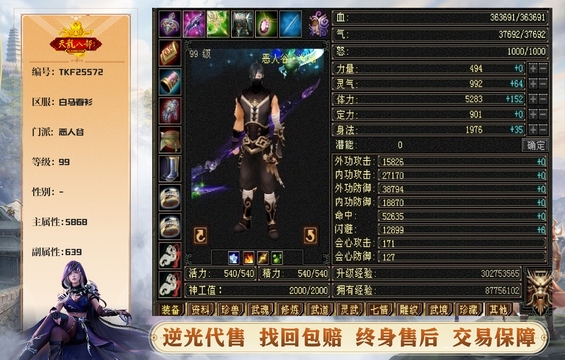 武当 | 等级:88 | 主属性:7174 | 副属性:2102 | 主冰攻 | VIP5 | 畅游账号