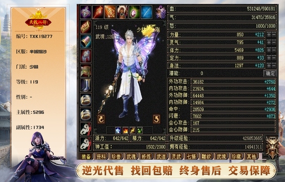 少林 | 等级:119 | 主属性:5296 | 副属性:1734 | 主玄攻 | VIP3 | 畅游账号