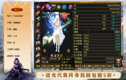 【TXU53097】 | 主属性:6900 | 副属性:3500 | 等级:119 | 明教 | 女 | VIP6 | 畅游账号 | 主火攻 【逆光终身包赔五折】
