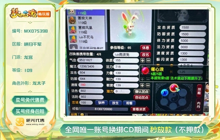 【TL308JS】 | 等级:119 | 主属性:5600 | 副属性:1500 | 逍遥 | 主火攻 | VIP6 | 男 | 畅游账号 【逆光终身包赔五折】