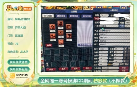 【MRM33838】 | 等级:76 | 总经验:280万 | 网易邮箱 | 180天尊享特权 | 男 | 五庄观 | 天覆阵【逆光代售卖号0手续费】【买号找回永久包赔】