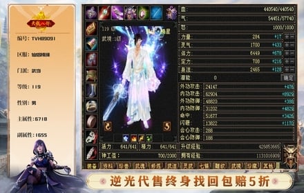 【TVH89091】 | 副属性:1655 | 等级:119 | 主属性:6718 | 男 | 主冰攻 | 武当 【逆光终身包赔五折】