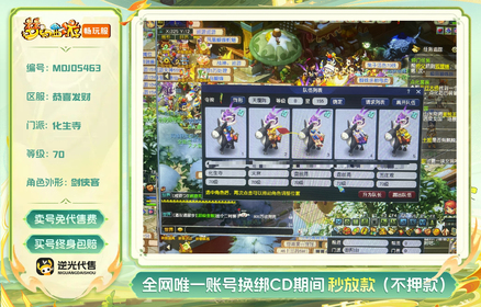 总经验:10500万 | 等级:70 | 五庄观,盘丝洞,化生寺,天宫 | 无换绑CD | 30天尊享特权 | 【逆光代售卖号0手续费】【买号找回永久包赔】