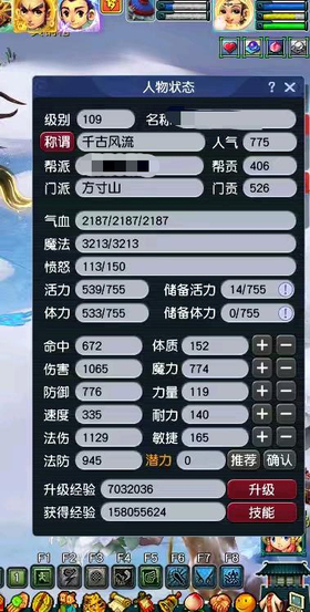 逍遥 | 等级:108 | 主属性:5702 | 副属性:3789 | 女 | 主火攻