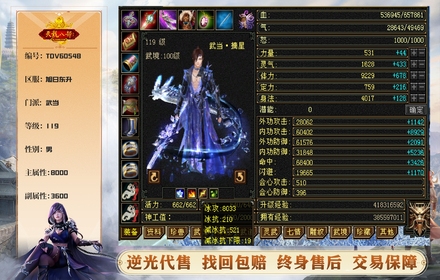 武当 | 等级:119 | 主属性:8000 | 副属性:3600 | 男 | 主冰攻 | VIP6 | 畅游账号