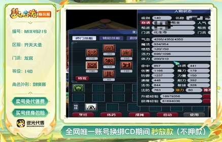 等级:140 | 五庄观,龙宫,魔王寨,化生寺,天宫 | 存在换绑CD | 180天尊享特权 | 【逆光代售卖号0手续费】【买号找回永久包赔】