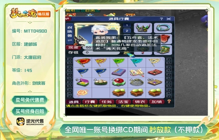 没时间玩了 出建邺城 145大唐号 带靓号 浮生俏三套 带宝宝 任务装备 即买即玩