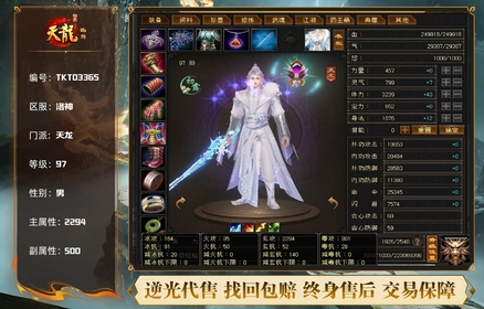 天龙 | 等级:97 | 主属性:2294 | 副属性:500 | 男 | 主玄攻